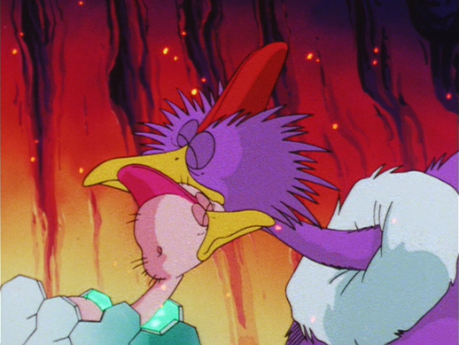 The pair rush off to Mt. Kiwi, but find that all the Fire-Eaters had been wiped out 40 years previously in an eruption. They come across an old scholar who is researching how to hatch the last remaining Fire-Eater egg.