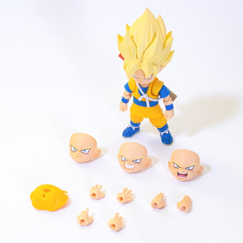 It also comes with a ton of hand parts as well! Not only are "open-handed" and "closed fists" parts included, but also "fingertips extended" parts from the scene where Super Saiyan Goku (Mini) deflects Glorio's powerful attack with just his fingertips!