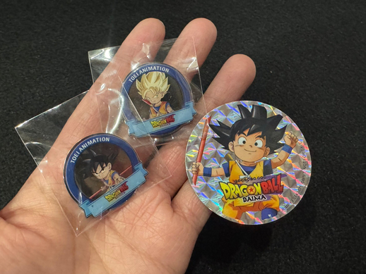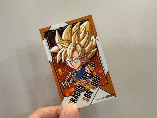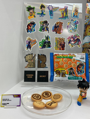 First off, we have a sample from Dragon Ball Sticker Cookies, a new food series that comes with an exciting sticker, either featuring a character from Dragon Ball DAIMA, or one of the warriors who fought in the intense battles from Dragon Ball Z! The cookies themselves feature designs of well-known Dragon Ball emblems and items!