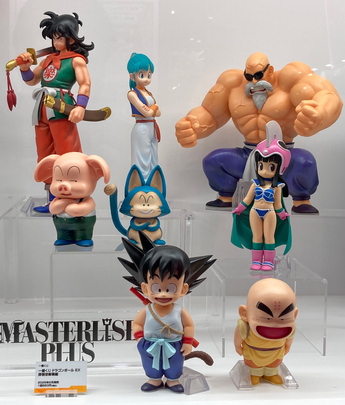 This display featured the Ichiban Kuji Dragon Ball EX Son Goku Training Arc figures that will be rolling out to stores starting February 8th! There are some rare versions of popular characters here that you won't want to miss, like young Chichi, or Krillin from when he asks to train with Kamesennin and Goku!
