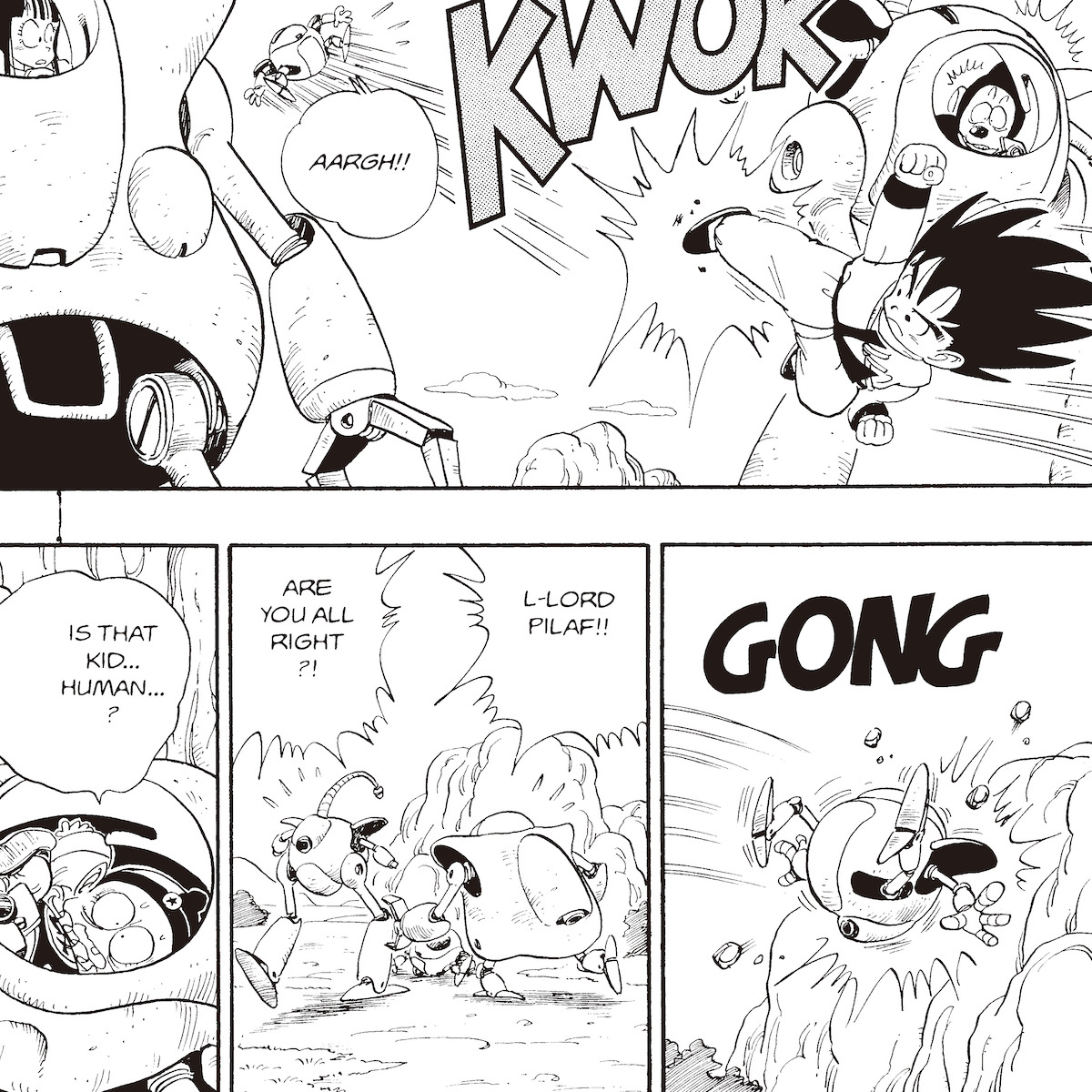 The Pilaf Machine doesn't break even after a kick from Goku.