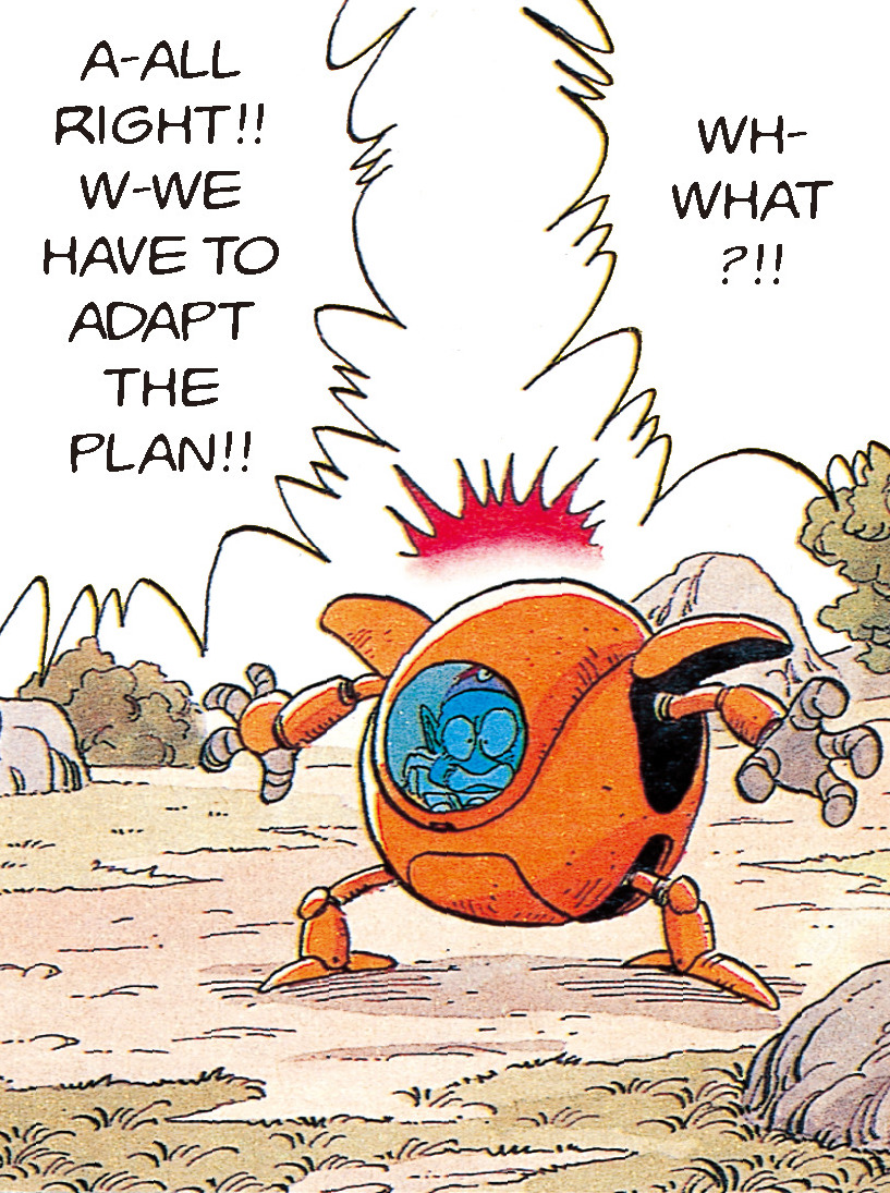 Don't be fooled by their round and cute design; Pilaf Machines are powerful, multifunctional robots said to have been developed by the tiny emperor himself! They are not only equipped with a flamethrower and missiles, but they can also combine to create the Combined Pilaf Machine!