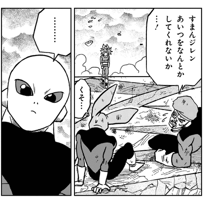 With his remaining teammate Dyspo, Kahseral calls on his ally, Jiren, for help, but his pleas go unanswered.