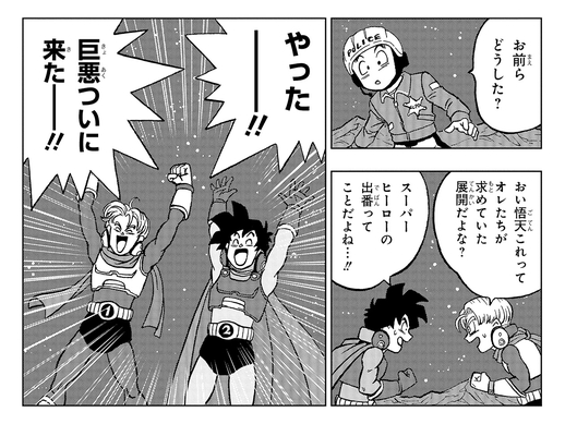 The stars of this chapter are Trunks and Goten, with the pair having been protecting the city as Saiyaman X-1 and X-2. Why did Trunks aspire to become a hero? Fans will not want to miss this prequel to the SUPER HERO arc!
