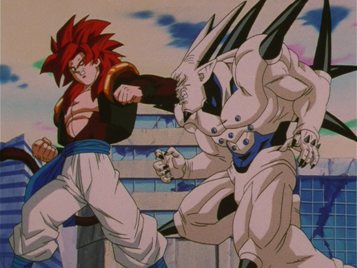 While neither Goku nor Vegeta could hold a candle to Yi-Shinron even at Super Saiyan 4, Gogeta immediately has him at his mercy with three punches too fast to be seen, along with other flashy attacks.