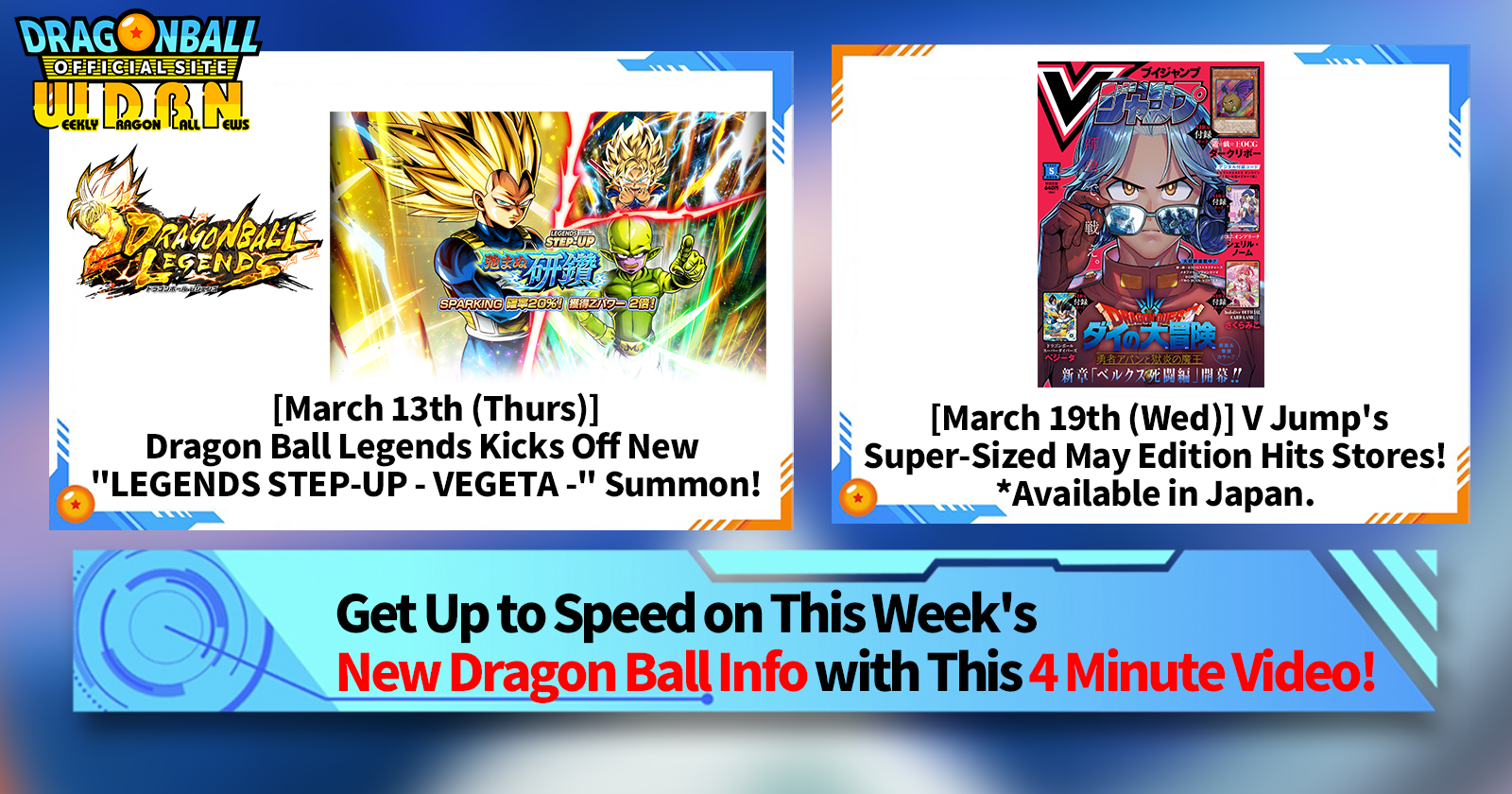 "Weekly Dragon Ball News" is a video series updated every Monday (JST) to bring you the latest news in the world of Dragon Ball! Join V Jump editor Victory Uchida as he covers all the hottest info released in the previous week as well as fresh updates like new product info and site news for the week to come!