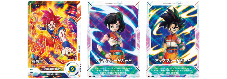 "Goku" (SDVPJ-012) is a Battle Card with the skill "Push to Victory", which increases your special move energy. The two included Upgrade Cards will help your Avatar Card grow and increase its damage in battle!