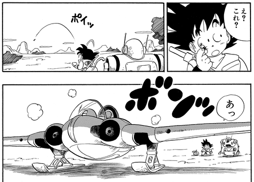 When Goku requests a vehicle that can take him far away, it tells him which capsule contains an airplane.