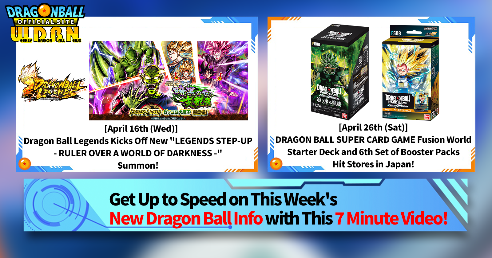 Tune in this week to hear all about DRAGON BALL SUPER CARD GAME Fusion World's new starter deck and -RIVALS CLASH- booster packs! Both of these releases are hitting stores on Saturday, April 26th in Japan!