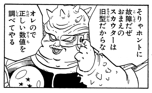 Zarbon's Scouter broke once it exceeded 22,000 when measuring Vegeta's Power Level. Dodoria confidently measures Vegeta's Power Level with his new Scouter, explaining, "It has to be a malfunction! Your Scouter's a lemon". Even when he was ambushed by Vegeta, he demands that the Saiyan hand over his Scouter, revealing how much he relies on it in battle and in his search for the Dragon Balls. As Dodoria was already strong to begin with, it seems that the reason for his defeat may have been due to slacking off in his training!