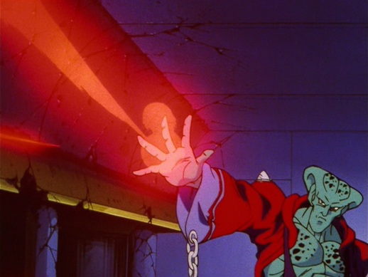 In order to retrieve their stolen Spaceship, Goku and the others infiltrate the Palace of Lord Don Kia. As they are leaving, Redgic casually deflects Goku's Kamehameha.