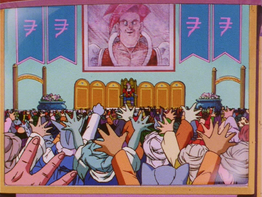 After Goku and friends break into his palace to take back their spacecraft, Don Kia blames his bodyguards for the situation, shouting, "...all of this happens right under the noses of my most highly paid military experts?!! What a bunch of useless twits!" Then he docks their salaries in order to pay for any repairs to his palace.