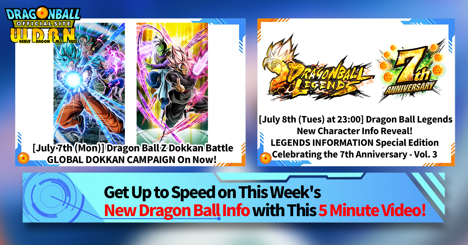 "Weekly Dragon Ball News" is a video series updated every Monday (JST) to bring you the latest news in the world of Dragon Ball! Join V Jump editor Victory Uchida as he covers all the hottest info released in the previous week as well as fresh updates like new product info and site news for the week to come!