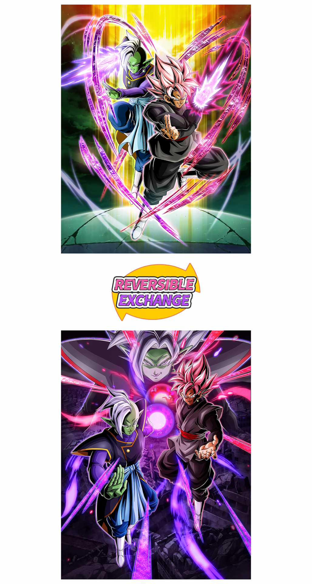 After DOKKAN awakening to LR, "Reversible Change" will become possible if certain conditions are met."Goku Black(Super Saiyan Rose) + Zamasu"and"Zamasu+ Goku Black(Super Saiyan Rose)"You can switch between them and fight!
