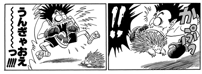 He attempts to bite Puar, but Puar turns himself into an echidna, causing Draculaman to scream in pain.
