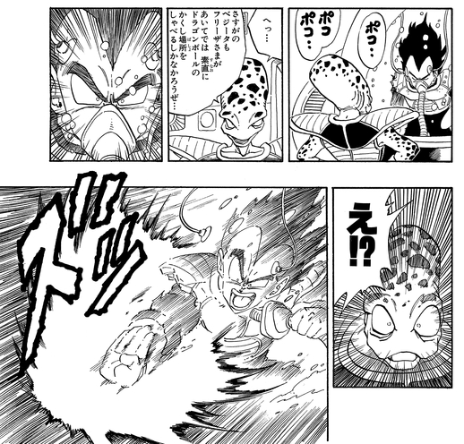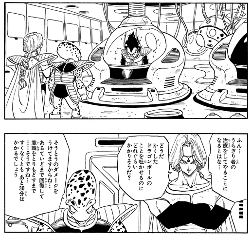 In order to find out where the Dragon Balls are hidden, Appule helps Vegeta heal his grievous injuries from the latter's fight with Zarbon. However, the Saiyan heals quicker than Appule expected and ambushes the soldier.