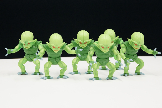 Looking at the finished product, I think it's probably fair to say that so far in the Reiwa Era, we're the ones who've taken the Saibaimen most seriously! The Saibaimen are perfect for displaying in large groups, and so to encourage fans to look forward to pulling duplicates, we designed them to be easily posable, with adjustable arms, heads, and wrists, so you can customize your very own swarm of Saibaimen! I hope fans give each one a bit of individual personality and displays them proudly alongside Vegeta and Nappa.