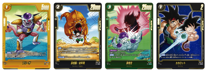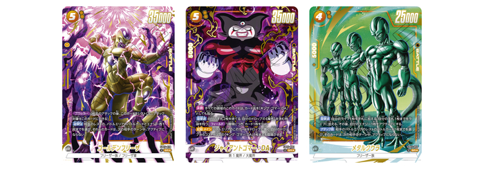 The "Yellow" SR Alt-Art cards are "Golden Frieza", "Giant Gomah: DA", and "Meta-Cooler". Giant Gomah, who stood before Goku and the others at the climax of Dragon Ball DAIMA, finally makes his Fusion World debut!