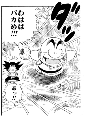 Krillin can be a little underhanded and sneaky. No time was this more apparent than when Kamesennin threw a stone with the turtle mark into the jungle as a training exercise to see who would become his pupil. After Goku found the stone, Krillin snatched it away and ran like the wind to try and claim victory for himself.