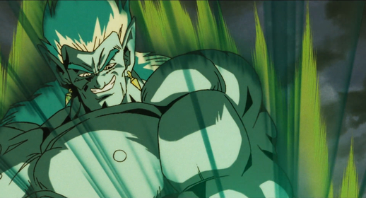 Vegeta soon arrives to provide assistance to Trunks but is chased down by Bojack with a barrage of ferocious attacks, then unleashing his Ki to power up.