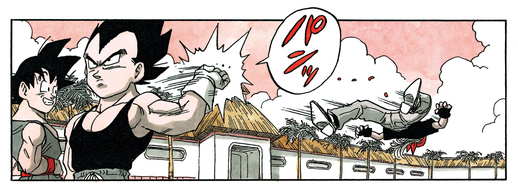 Eating a nonchalant backfist from Vegeta, Knock is sent flying and ultimately left KO'd before the bout even begins.