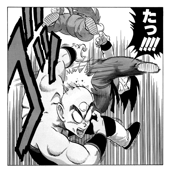 The pair are truly talented, with Tenshinhan easily making it through the preliminaries to face off against Yamcha in the first round of the main event. The panel below, depicting the deciding moment of their match, took up an entire page in the manga!