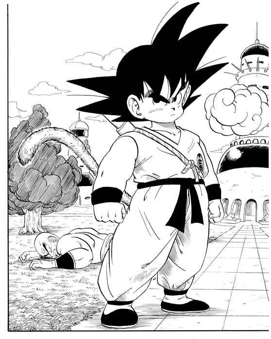 During the trials on the path to the Super Water of the Gods, readers had a glimpse of the power of the Great Ape hiding within Goku. Summoning this strength, Goku's strike pierces right through the Demon King Piccolo, returning peace to the land. However, Goku learns that on the brink of death, the demon king left behind a double of himself. To deal with the future appearance of this threat, he undergoes further training with Kami as his mentor.