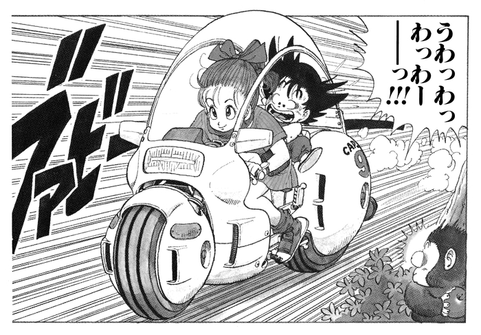 From the dynamic between the duo of country boy Goku and city girl Bulma, to the setting of the story and anticipation for the thrilling adventures to come, this dynamic scene perfectly conveys it all! The two go on to meet all kinds of new people and forge deep bonds of friendship with characters such as Oolong, Kamesennin, Yamcha, Puar, and more, but this is where it all began.