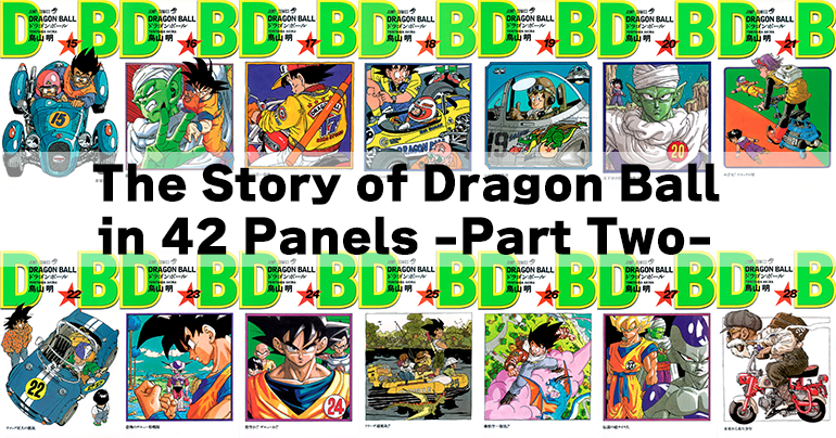 This article series commenced on November 20th to coincide with the anniversary of Dragon Ball's first publication. Here, we're retracing the journey of Goku and his friends by selecting one panel from each of the 42 volumes of Jump Comics' Dragon Ball. When we last left off in part one, we covered the ground between Goku setting off on his grand adventure along with his new friend Bulma all the way to his victory over the Great Demon King Piccolo. In part two, we'll be taking a look at volumes 15 through 28. If you have a memorable panel of your own, remember to tell us in the comments below!