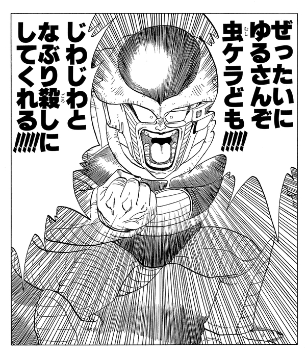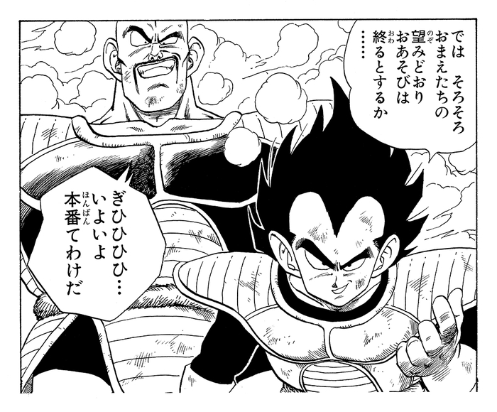 Frieza and his subordinates overrun the villages of Planet Namek in order to steal the Dragon Balls as part of his dastardly plan to seek eternal life; seeing their cruel and heartless acts must have instilled a sense of dread in readers. Vegeta, who had previously fought Goku in a cataclysmic duel, then arrives on Planet Namek, escalating the scramble for ownership over the Dragon Balls.