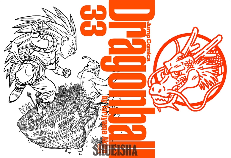 Here we see a fiery battle unfolding between Gotenks and Majin Buu above Kami's Palace. The devastating destruction of the palace speaks volumes about the intensity of their fight, while the use of line art provides a clearer view of all the elaborate details, down to the palace's interior and the scattered debris.