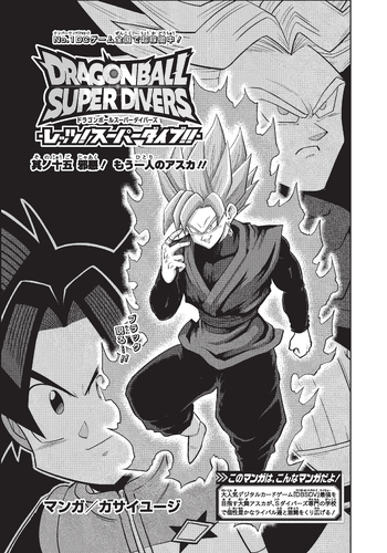 While Asuka and his 1-A classmates are enjoying making mochi, Asuka's doppelganger Asuka Black appears, calling for the elimination of all mortals! Shinatomirai Tran, a visitor from the future, proposes a Super Divers battle in order to put a stop to Asuka Black!
