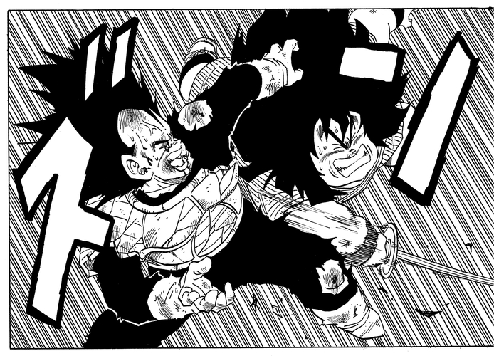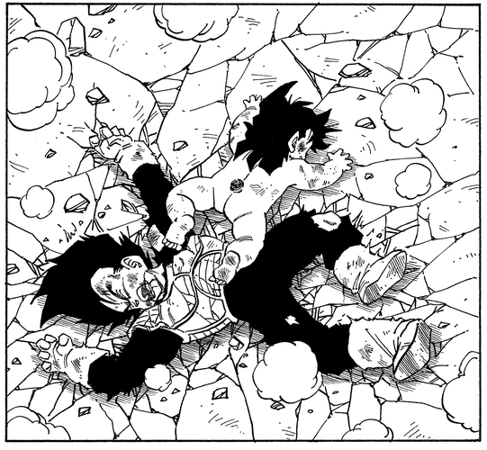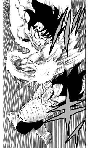 Goku takes out Nappa, and Vegeta takes his place as Goku's opponent.
