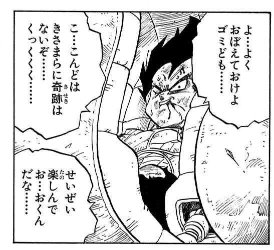 Vegeta has a cruel streak to him, and even his allies are not safe. We see him blasting a Saibaiman who failed to take its opponent seriously and even disintegrating his companion Nappa with a cold "What good are you if you cannot fight?!!"
