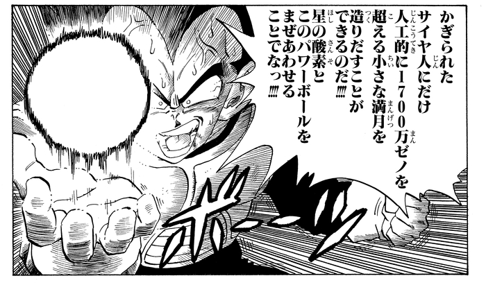 By mixing with the oxygen in a planet's atmosphere, this technique creates an artificial miniature full moon that reflects over 17 million Zeno. Only select Saiyans can use this technique, which allows them to perform a Great Ape Transformation when a natural full moon is unavailable.