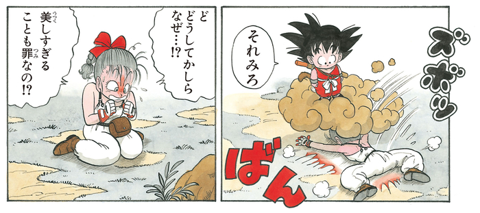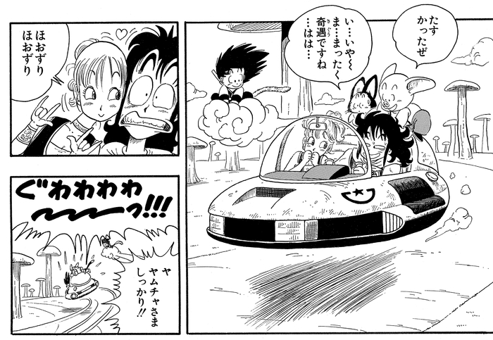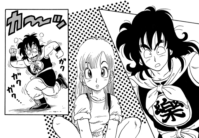 Next, the party is attacked by the desert bandit Yamcha, who Bulma falls in love with at first sight. However, Yamcha has a crippling fear of women, and he slips away.