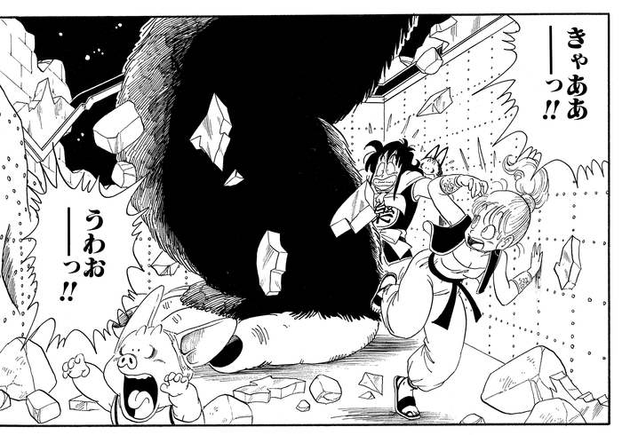 After Goku defeats Oolong, Bulma decides to have Oolong join them on their journey, thinking that his shapeshifting abilities may come in handy.