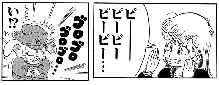 Bulma also invented PP Candy, which causes intense stomach distress whenever a beeping sound goes off. She gave this candy to Oolong when he was misbehaving to prevent him from deserting the group.