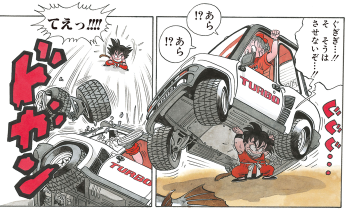 She is attacked by Goku, who mistakes her car for a monster, and is stunned by his extraordinary strength.