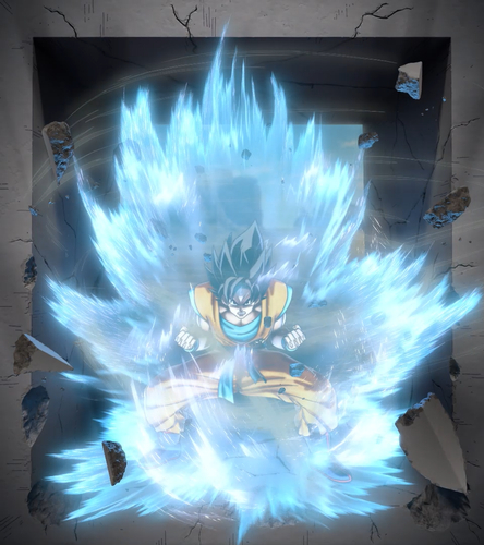 Step inside the store to see the many other forms of Goku! Here, we can see him with the wasteland behind him, in a battle stance and looking fierce in his Super Saiyan form!