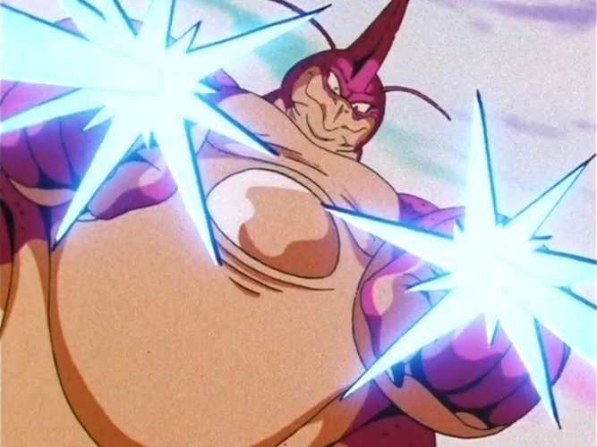 Enveloping Goku and Pan in his Electric Slime, he immobilizes the pair and unleashes a torrent of electricity upon them, rendering the two unconscious.