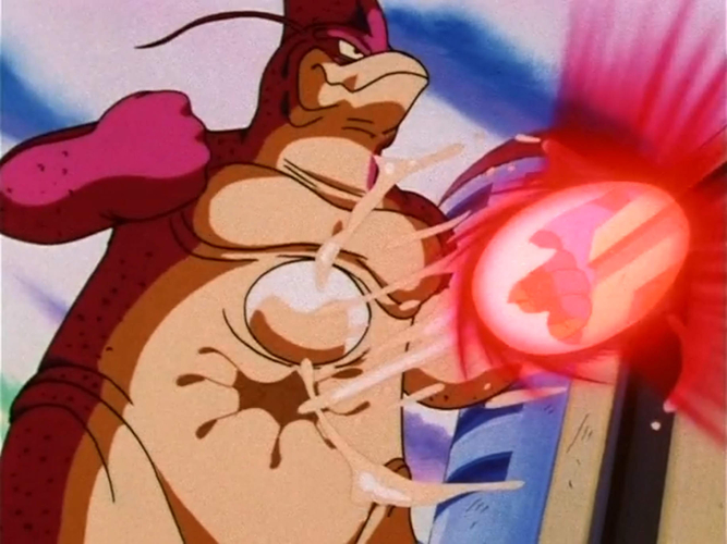 However, this has no effect on Goku, who transformed into Super Saiyan 4. With Goku unleashing a 10x Kamehameha, it looks like it's game over for Wu-Shinron. However, the attack merely bounces off his squishy, slime-like body.