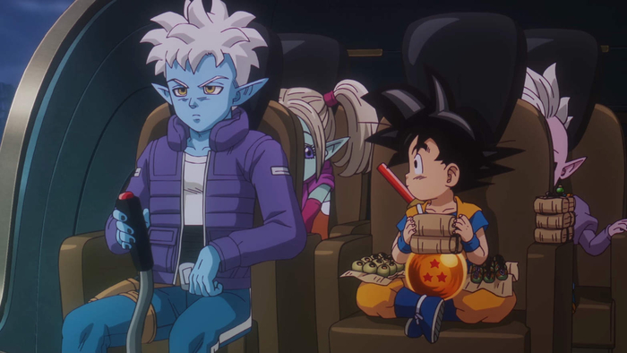 Traveling by airplane, Goku and Supreme Kai accompany Glorio to the Demon Realm, where they head towards the residence of Glorio's client, King Kadan of The Third Demon World.