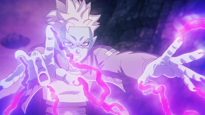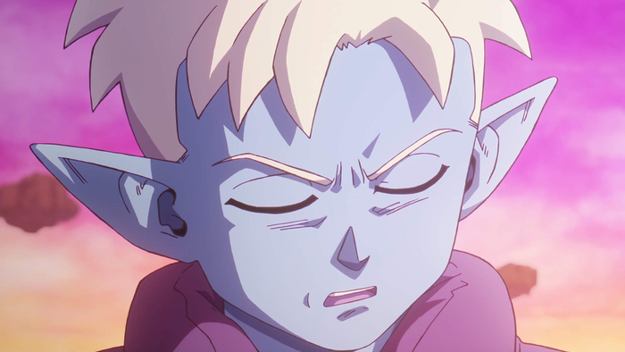 Glorio spars with Goku in an effort to test his own strength, demonstrating his magic with lightning-like attacks unleashed from his fingertips. However, Goku, now in Super Saiyan form, brushes off his magic and catches him off guard from behind. Though no match for Goku, he does appear to have considerable strength.
