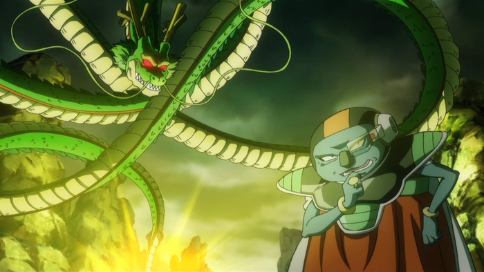 To bring Frieza back using the power of the Dragon Balls, he and his subordinate Tagoma head to Earth. He then steals the Dragon Balls that the Pilaf Gang had collected and successfully summons Shenron.