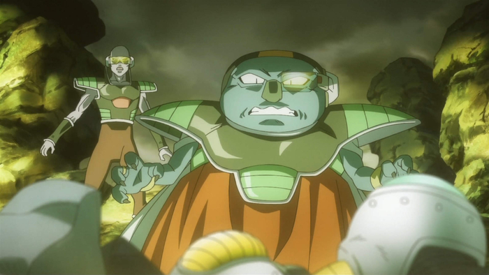 A shocked Sorbet looks on as his soldiers are taken out one by one. He is left utterly baffled when his aide Sisami is taken out by Super Saiyan Gohan, crying out, "No. It's not fair! Not Sisami, too!"