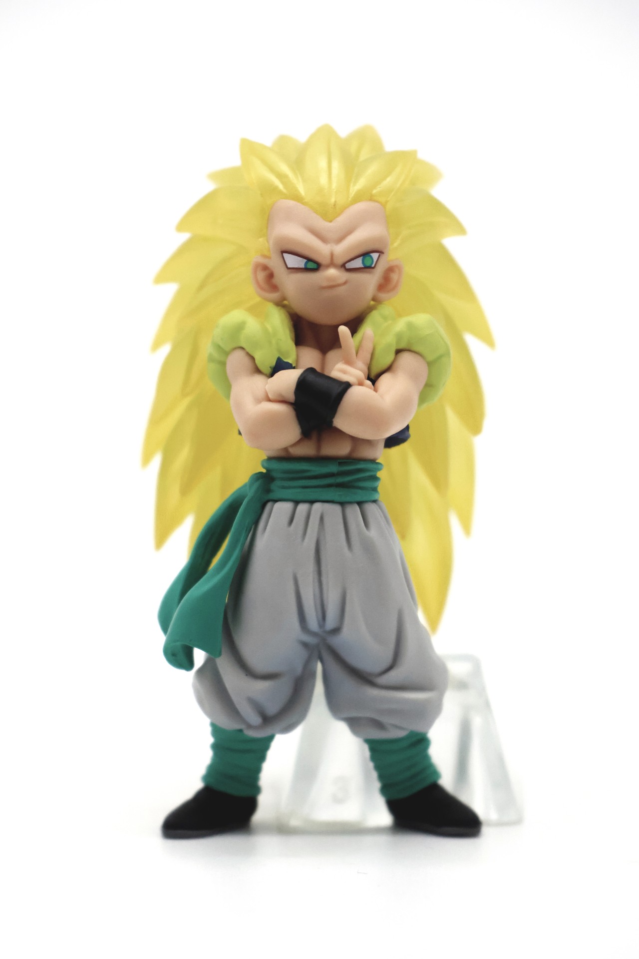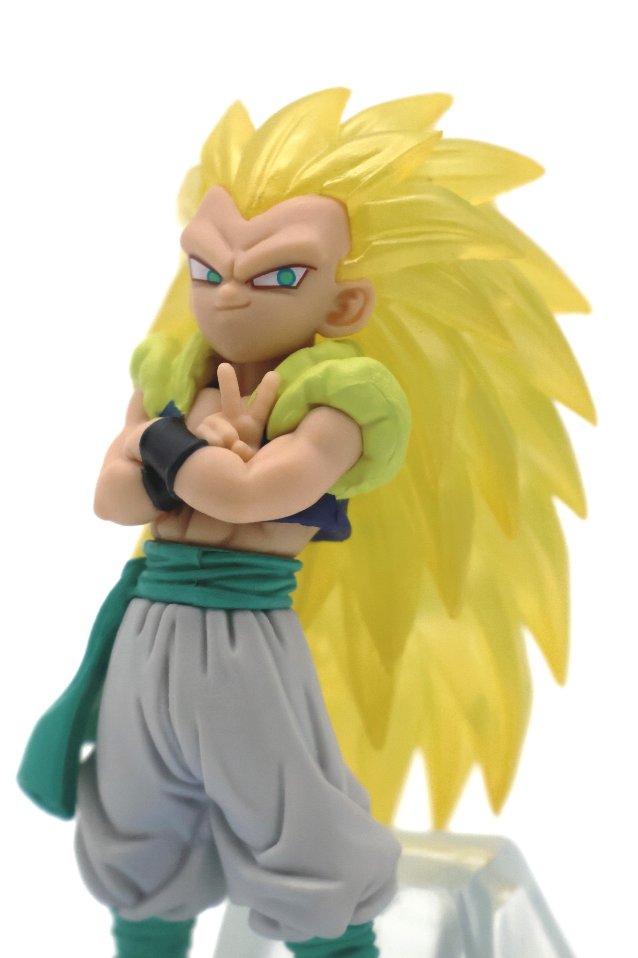 Next up is Super Saiyan 3 Gotenks! As he's still a child, he's a bit smaller than the other figures, but he makes up for it with his presence! His confident peace sign is too much to resist!