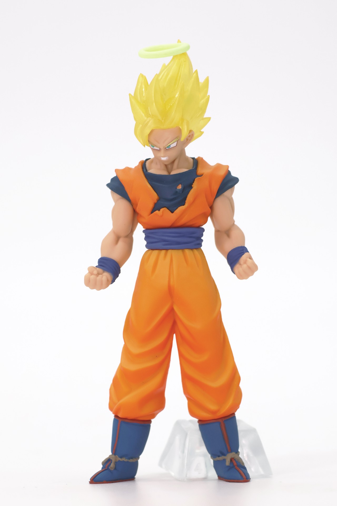Not only does Super Saiyan 2 Goku have a halo, but he's also wearing the uniform that was torn during his fight with Yakon. His grim expression, revealing his dread about having to unexpectedly fight Vegeta, has been beautifully recreated!