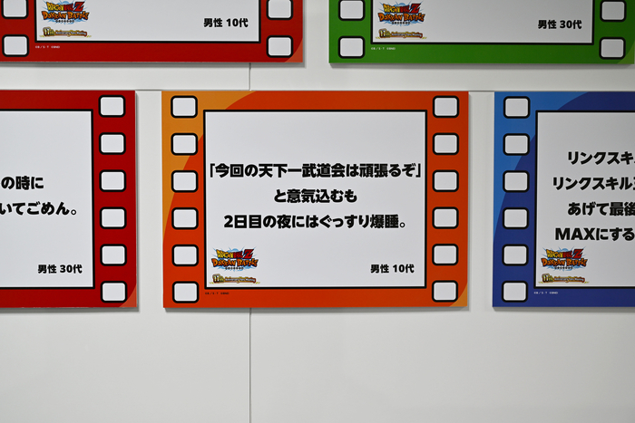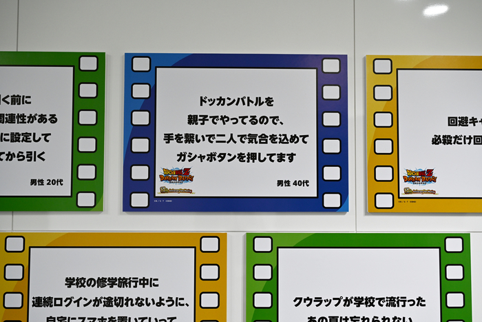 Here we had the DOKKAN's Memory Exhibition, a compilation of user posts collected from social media. The panels were designed to resemble the familiar in-game Support Memory and were peppered with anecdotes that had fans of Dokkan instinctively nodding their heads in agreement. Attendees who stopped to look couldn't help but smile at how they identified with these tales.