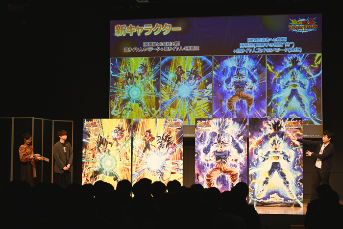 Finally, it was time for the main event, with the unveiling of the 11th Anniversary Campaign Part 2 characters on stage! The venue erupted in cheers and applause upon the announcement of "[Final Showdown Against the Shadow Dragons] Super Saiyan 4 Vegeta + Super Saiyan 4 Goku" and "[Challenging the Strongest of the Strong] Goku (Ultra Instinct -Sign-) + Super Saiyan God SS Evolved Vegeta" joining the battle!